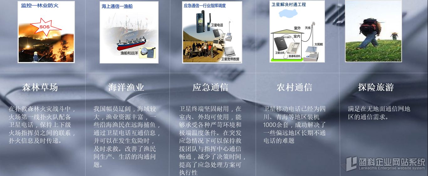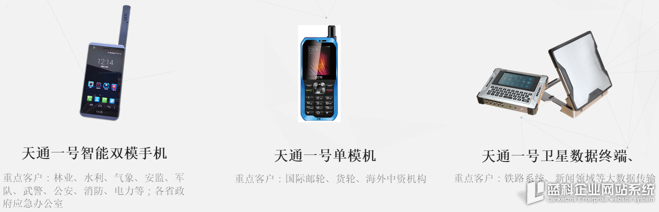 中国2016年8月6日发射的天通一号卫星开展国内移动卫星电话通信服务;利用海事卫星提供国外范围的移动通信服务,包括卫星移动电话业务和卫星移动数据传输业务。