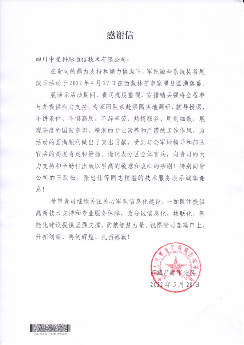 演示活动期间,我司高度重视,安排相关工作人员全程参与并提供有力支持,专家团队亲赴察隅实地调研、辅导授课,不惧高反、不辞辛劳,热情服务、周到细致,展现高度的国防意识、精湛的专业素养和严谨的工作作风,为活动的圆满完成做出了突出贡献,受到与会军地领导和部队官兵的高度肯定和赞扬。